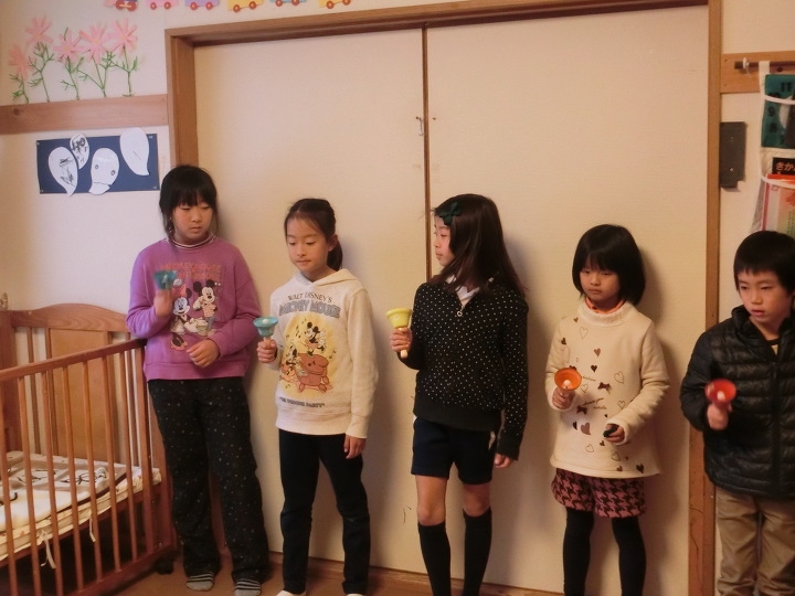 サンタさんの後は、かぼちゃのお兄さん、お姉さん達からハンドベル演奏のプレゼント♪