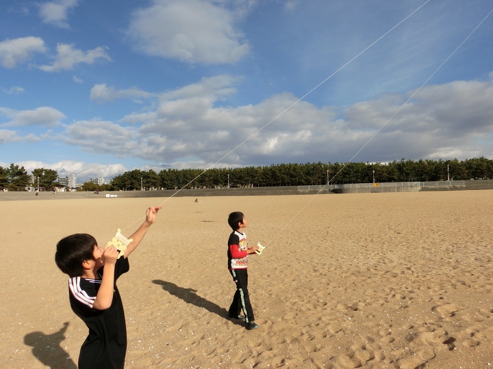 芦屋浜へ凧揚げに行きました。